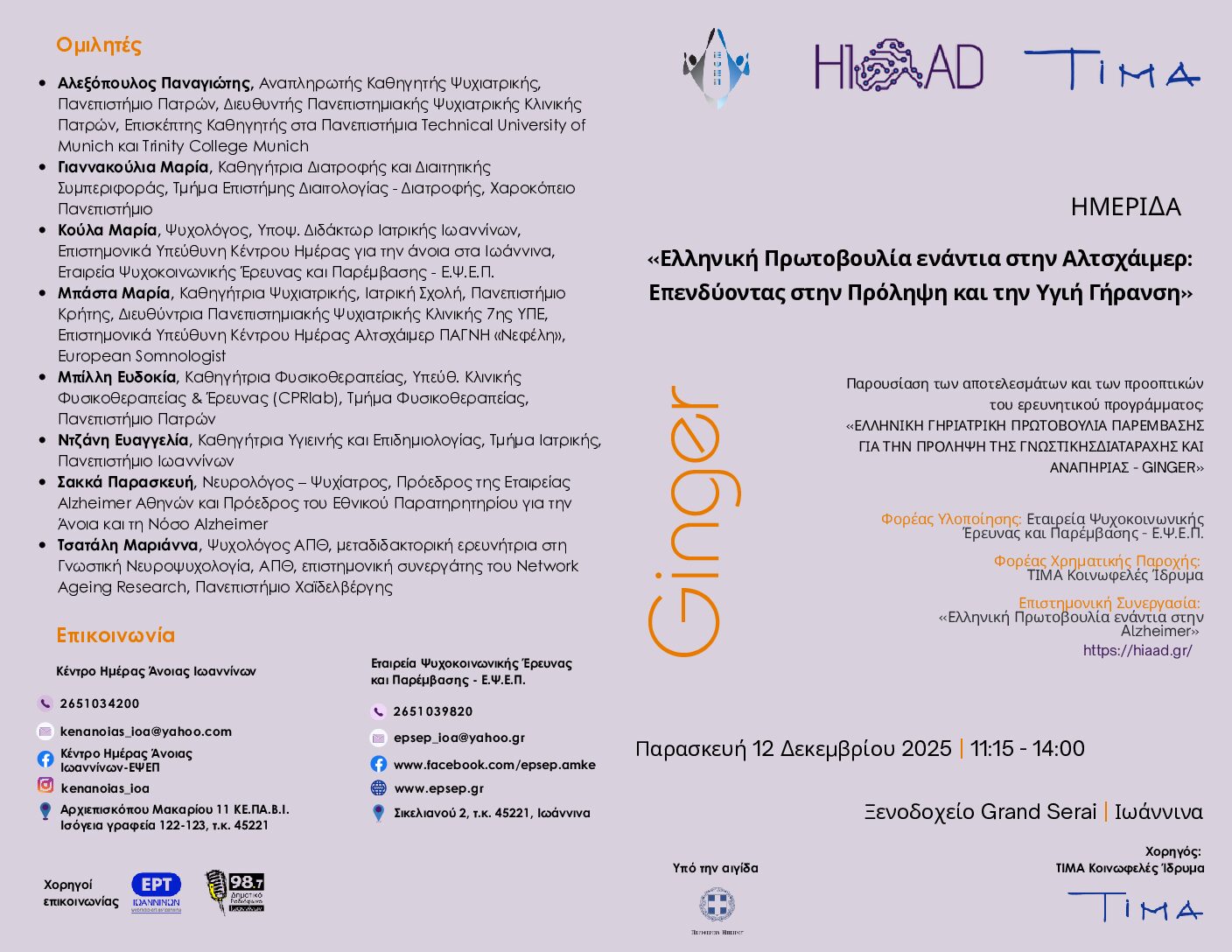 Ελληνική Πρωτοβουλία ενάντια στην Αλτσχάιμερ: Επενδύοντας στην Πρόληψη και την Υγιή Γήρανση